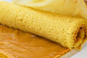 - Dobre as laterais da folha sobre o recheio e, em seguida, enrole-a cuidadosamente, formando um charuto.