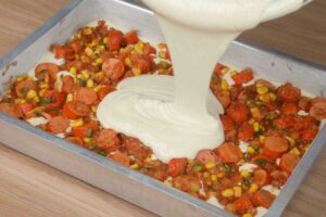 - Adicione o leite fervente e bata bem por 5 minutos. Transfira essa mistura para um refratário oval (25 cm x 17 cm) e leve para gelar por cerca de 6-8 horas.