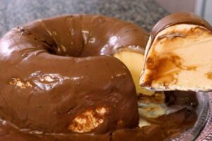 5. Leve para assar em forno pré-aquecido a 180°C por cerca de 35 minutos. Depois de esfriar desenforme e está pronto.