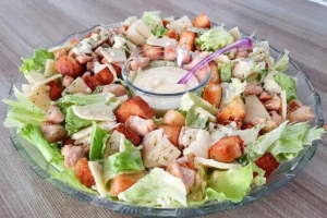 - Espalhe com uma colher o molho pronto de frango cremoso, que não pode estar líquido, por cima das fatias de muçarela, distribua as azeitonas, cebola em rodelas (opcional), se gostar, catupiry e rodelas de tomate. Polvilhe com orégano e repita o mesmo procedimento da outra metade da massa, tanto para enrolar, como para fechar a massa.