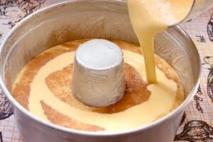 - Por fim, entre com o fermento em pó e torne a mexer, para integrar.