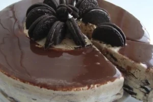 - Despeje a ganache sobre o pavê, espalhando uniformemente.