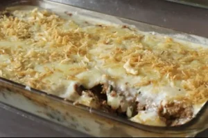 - Leve para assar em forno pré-aquecido a 180°C, por cerca de 35-40 minutos, ou até estar douradinho por cima (faça o teste do palito, se sair limpo, está assado).