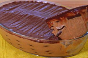 - Repita essas camadas, até preencher o refratário, mas a última camada deverá ser de creme. Leve para gelar por 12 horas. Retire da geladeira e polvilhe leite ninho a gosto.