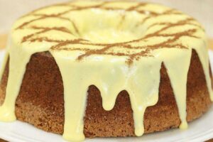 - Com a ganache pronta, despeje-a sobre o creme na travessa e nivele com espátula.